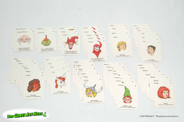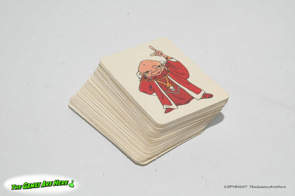 This game lists 54 cards on the instructions, but we have researched this (on BGG and one other sight) and found that they included a proof of purchase card in that total, it actually uses 53 playing cards, which this game has. The box has shelf wear on the corners\edges, there are small remnants of some tape on the back upper and lower edges that wrap onto the sides of the lid, but they aren't bad looking. The lid is a little concave from other games sitting on top of it, the box back has a concave area on the right. All box corners are intact with no tears or tape. The board looks nice, the cards look good and lay flat. The pawns and bases look good, the instructions on the box liner are in good condition.