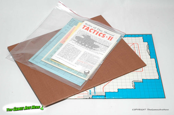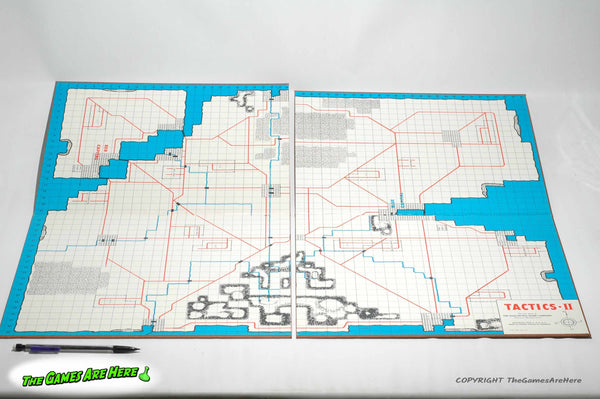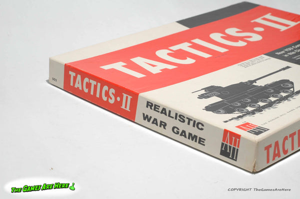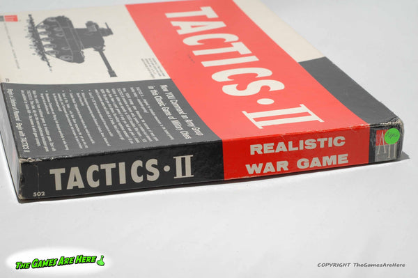 This item is a opened box, but UNUSED Tactics II Game from Avalon Hill 1973. The counters in this game are unpunched/unused. The box has shelf wear on the corners\edges, one lid corner is split\taped with clear box tape. The box back has some peeled areas on the smooth brown paper which reveal a rougher brown paper below. The board looks good, as do the other contents.