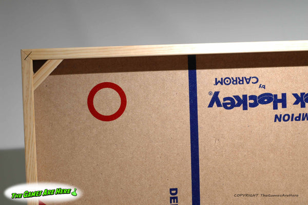 The box has shelf wear on the corners\edges, and little on the faces, their is a stain on the front left area that is visible in the orange square. The two sticks, two pucks and instructions are in their factory sealed plastic bag. The board measures 35"x 23 &7/8" x 1 & 7/8". The board looks nice and overall it looks good. The last two pictures were taken while it was still factory sealed. Due to the size of this item it will ship via UPS, so very sorry, no P.O. Boxes.