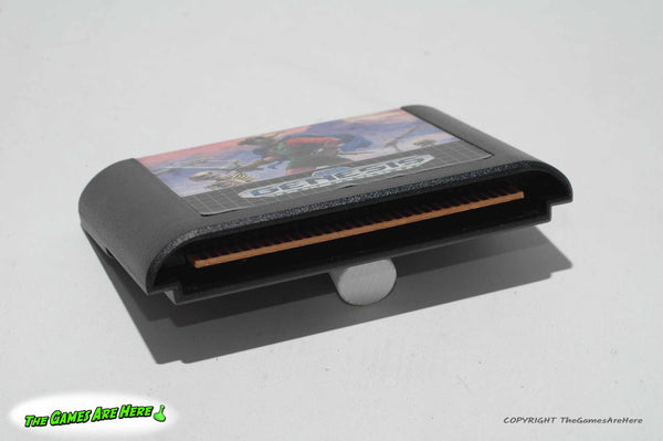 The cartridge has been cleaned and tested (as all our games are) and it works fine. The original battery has been tested and it works, there is saved information on the cart currently (see pic). The case has light scuffing, it has the original plastic hang tag on the case intact. The label on the cartridge has a little curling along the front lower edge area and there are some small bubbling on the front face. It has a crease along the upper edge where the cartridge dips along that upper edge at the middle. The plastic cart looks good, the leads are in good clean condition. This game comes from our personal collection.