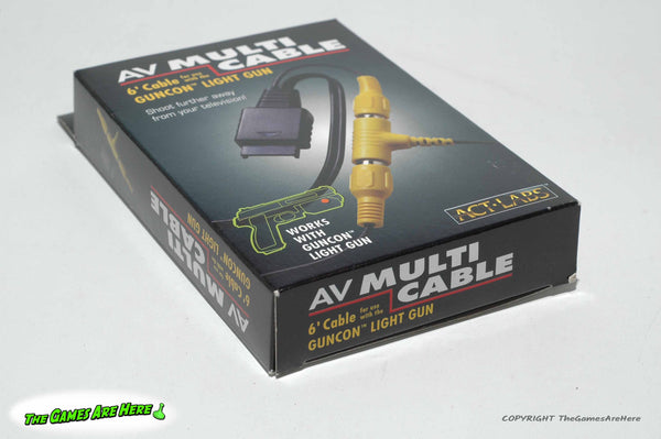 This item is a opened box, but unused Multi Cable for Guncon Light Gun Playstation from Act Labs 1997. It was in it's original factory taped bubble wrap bag which we opened for picturing. The box has light shelf wear on the corners and a light amount on the faces. The cable looks nice and overall it looks good.