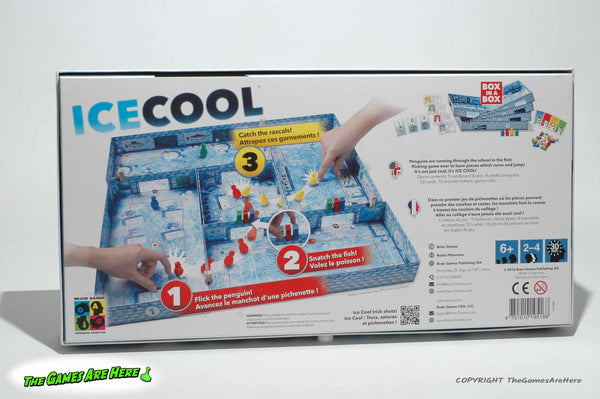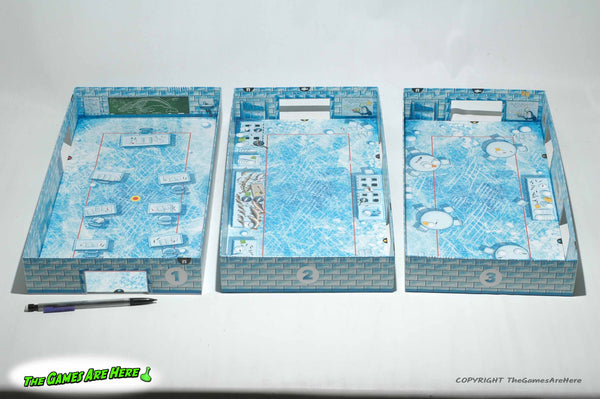 The box has shelf wear on the corners\edges\face, there is a ding on the front lower edge near the left corner. There is some light indented scuff lines running down from the upper left edge to near the art of the Penguin on the front. All box corners are intact with no tears or tape. The boards and other contents look good, the cards look good and lay flat.