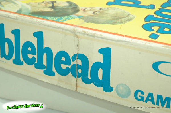 The box has shelf wear on the corners\edges\faces, there are pieces of clear box tape on the corners and edges. One lid corner and two long side edges of the lid are split\taped with clear box tape. The cover looks a little faded and there are creases on the box. The plastic frame for the head has a crack near the upper edge, but it's not bad and is still solid. The marbles cannot be confirmed as original, so we will assume that they are not. Overall the box shows it's age, the contents look okay and it is a perfectly playable game.