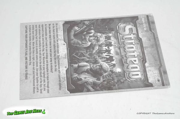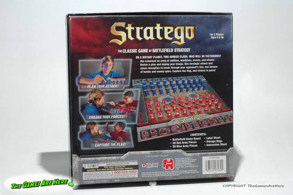 This item is a USED Stratego Battle Game from Patch 2014. The box has a little shelf wear on the corners\edges, all box corners are intact with no tears or tape. The board and other contents look good.