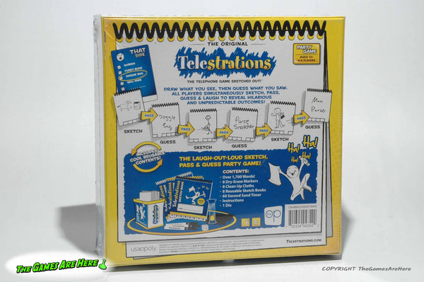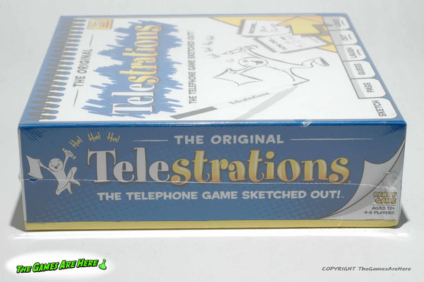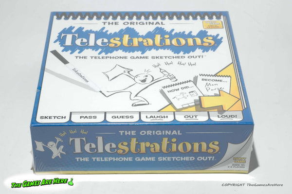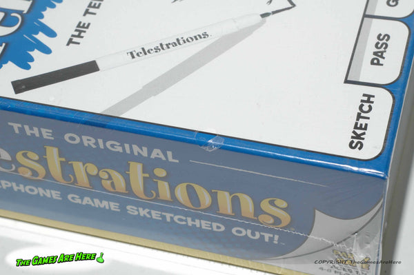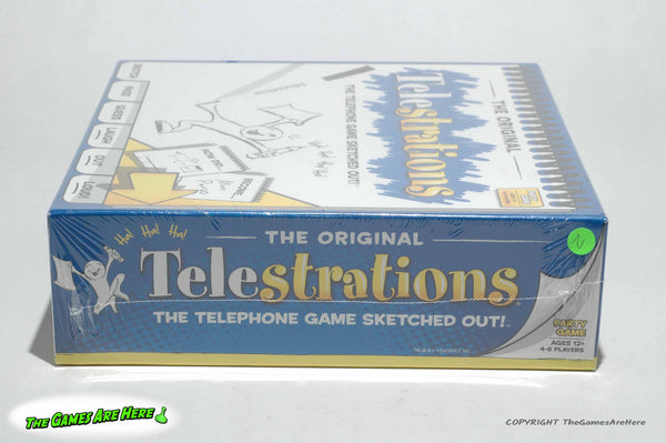 This item is a Factory Sealed Telestrations 8 Player Party Game from USA Opoly 2013. There is some light shelf wear on some corners where the box corners are protruding through the plastic. There is a small tear in the plastic on the lower left edge and there is a light crease on the back lower right corner area, but overall it looks good. It is recommended to have some extra dry erase pens as a backup to the originals (we love this game and always have extras just in case!)