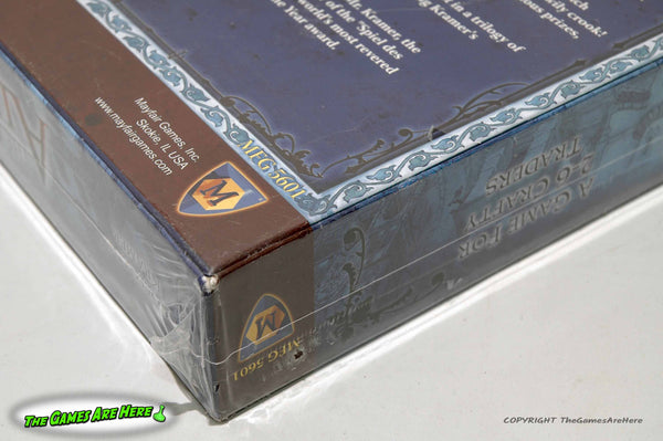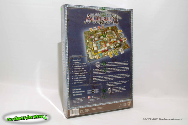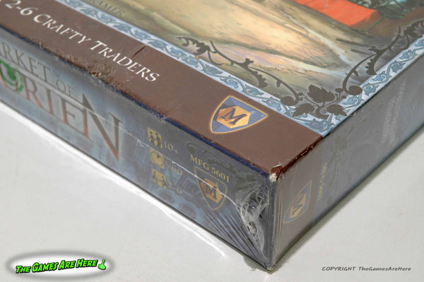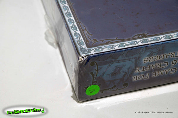 This item is a Factory Sealed The Market of Alturien from Mayfair 2007. The plastic has tearing in numerous areas and a large tear in the front middle area. There is a ding on the front middle area at the upper edge of the large tear in the plastic. There are scuffs and dings along the edges of the box and all the corners are protruding thru the plastic and all show wear. Overall it looks acceptable, but certainly not collectable.