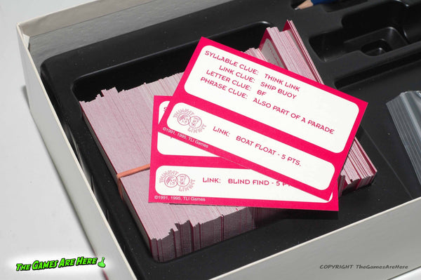 This item is a USED Think it Link it Game of Rhyme and Reason from TLI Games 1995.