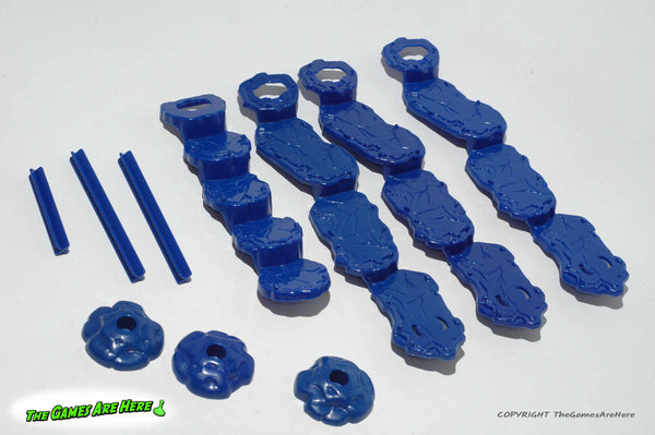 The box has shelf wear on the corners\edges\faces, and there is tearing in the cover paper on the back face that reveals the white paper below. There are pieces of tape along the flaps on the left and right, the back right flap is taped closed. There are remnants of some old Christmas paper still taped to the right side flap. The board has some light scuffing on one of the corner areas. The oval punch outs where the walls stand are still in the holes, unpunched. The Tower has been tested and it works great, we added some baby oil to the slot and the colored bases to help insert and remove the bases, but it is still somewhat tight so patients is the key in removing the bases. The character pieces look good, the small pennants and large flag poles look good, the stickers on the large flags are loose, but can be adjusted easily. The cards and tokens look good, the ramps and stands look good. Overall, the box has some wear, but the contents look good.
